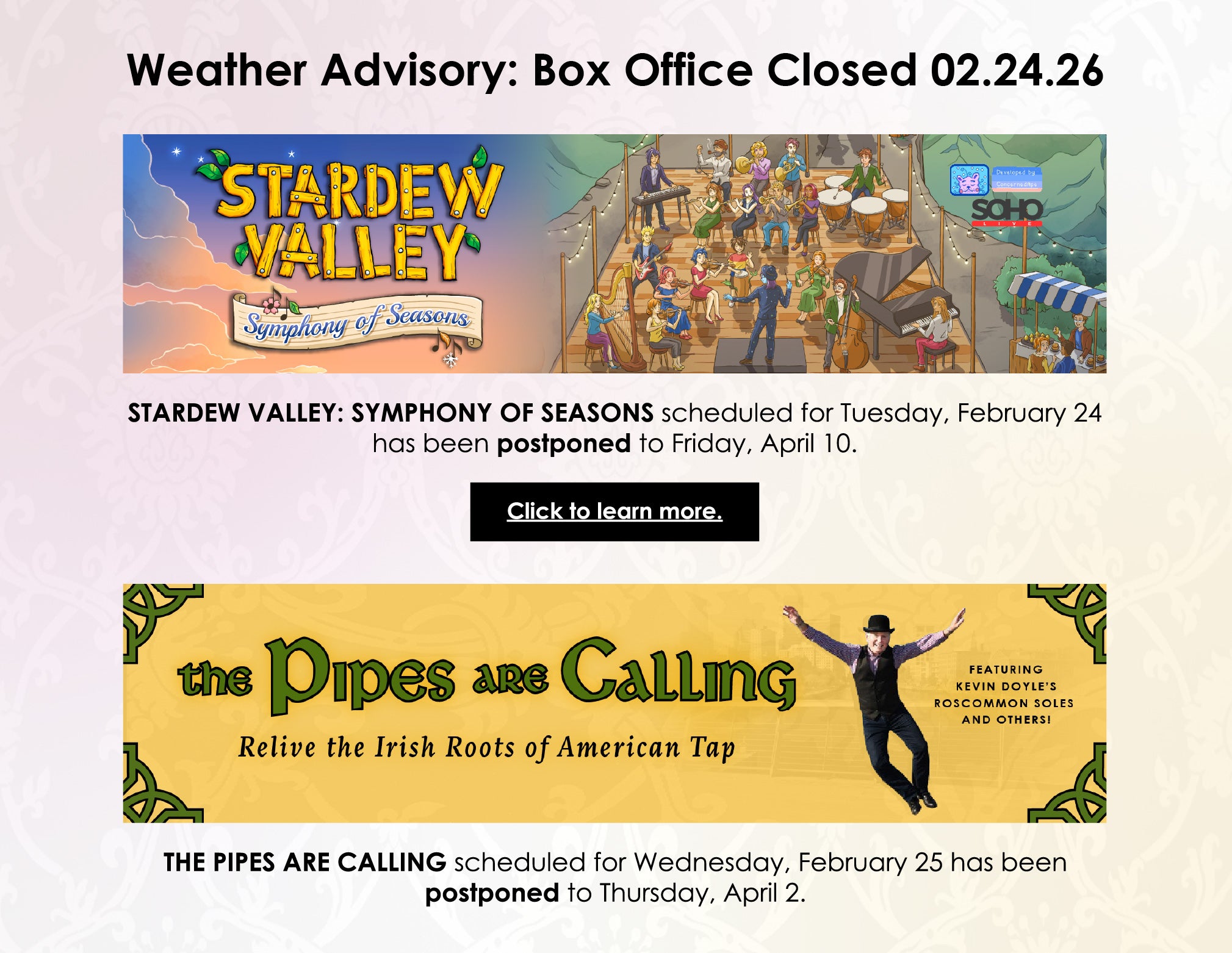 Also open two hours prior to all curtain times.